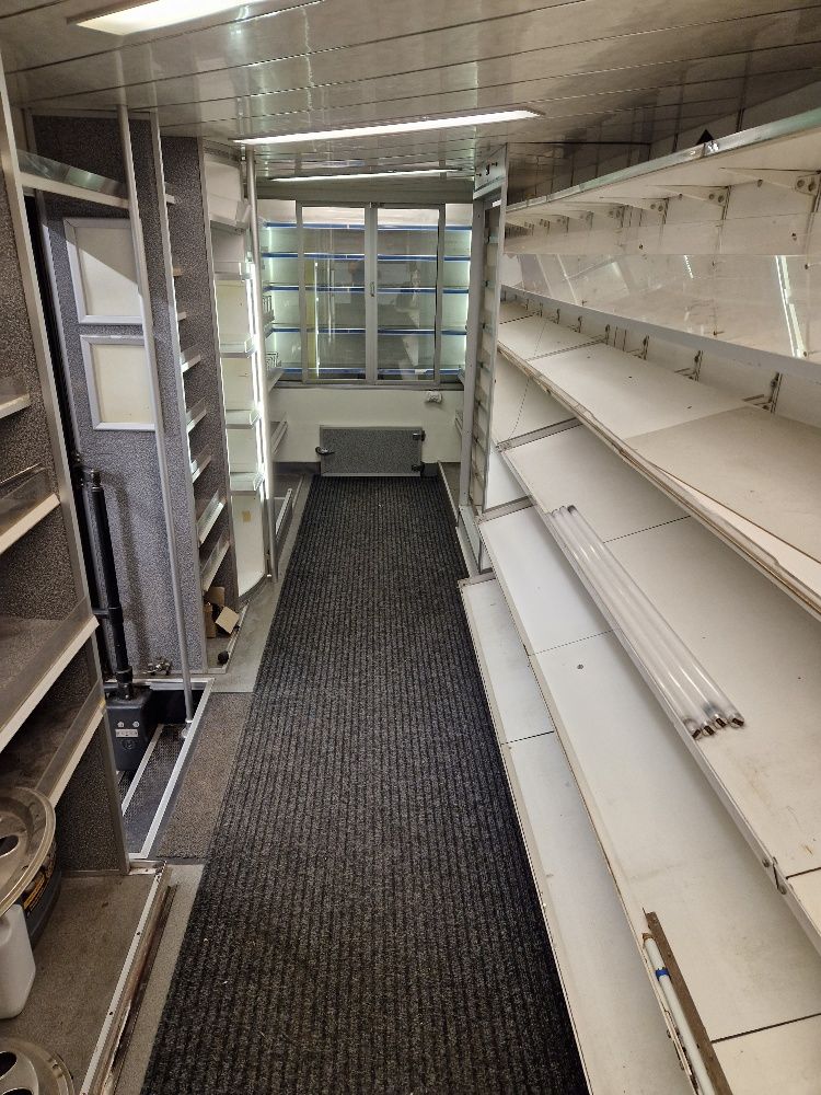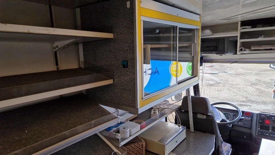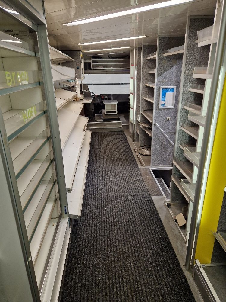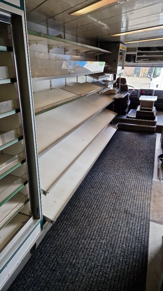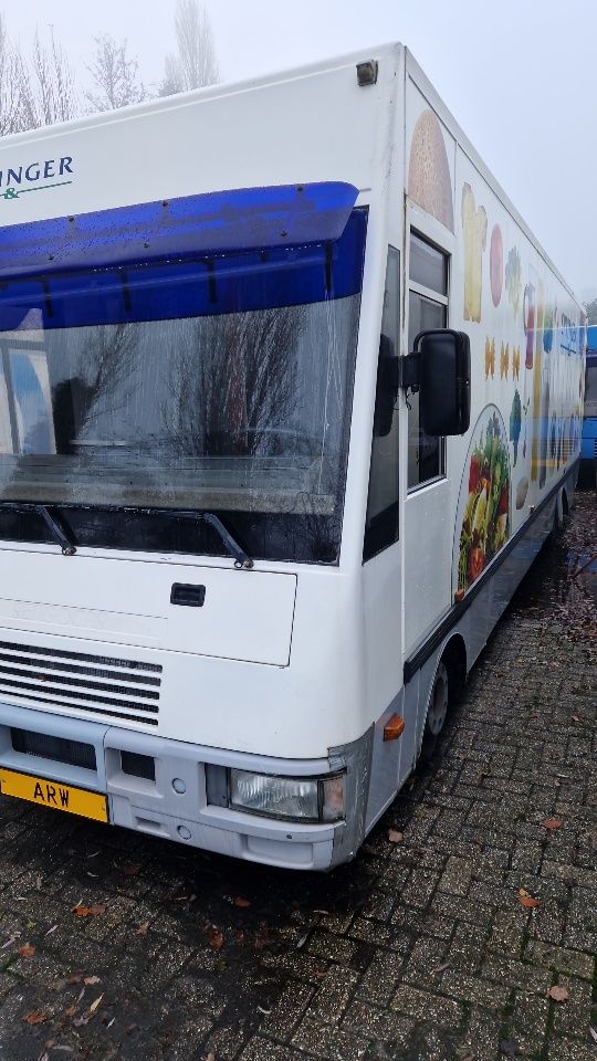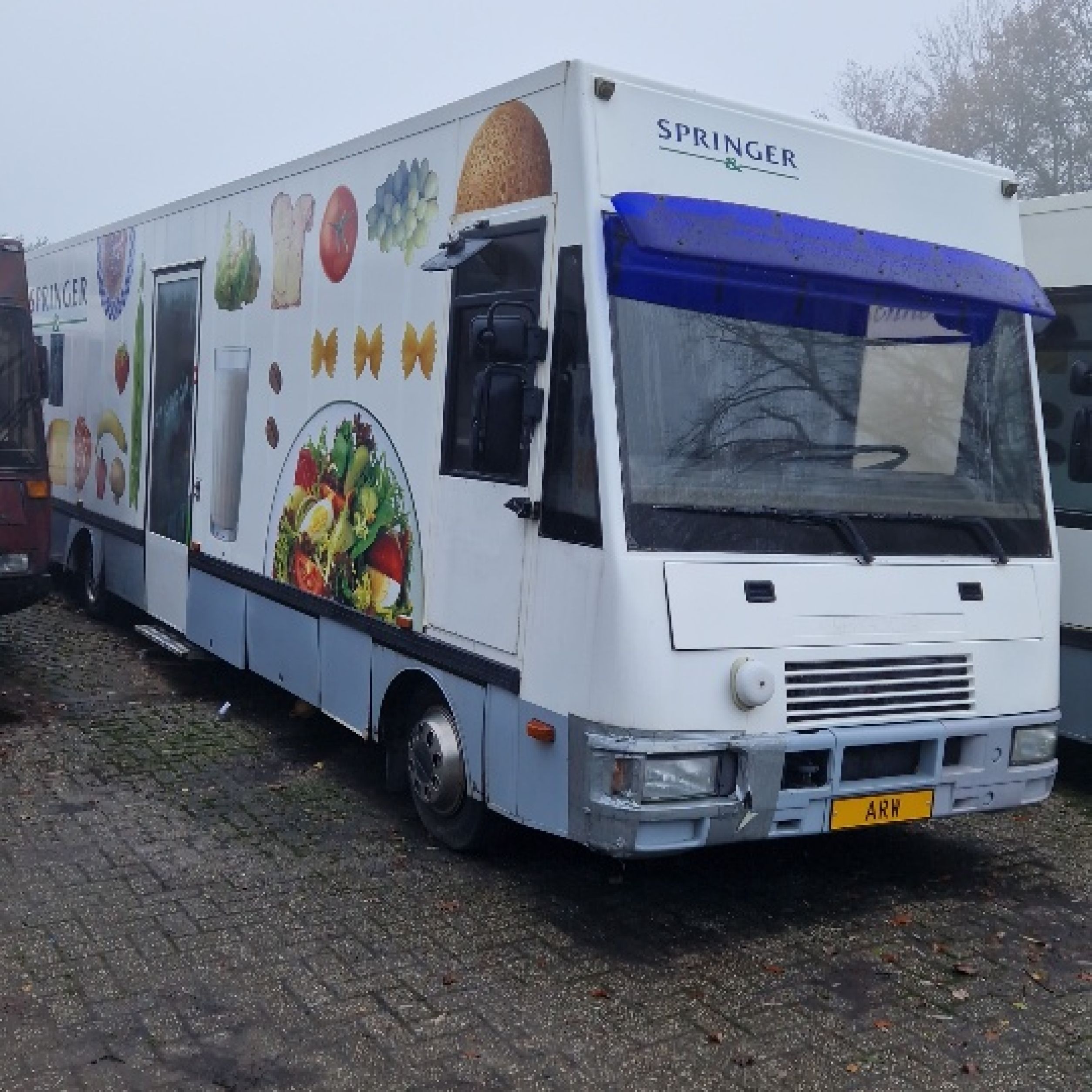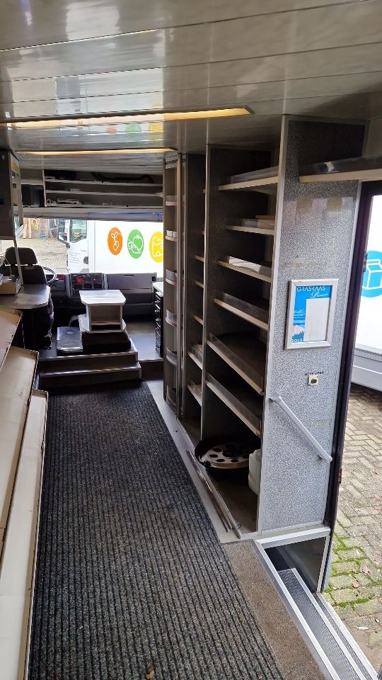Een 10.30 meter Rijdende Winkel (RW) welke is gebouwd op een Iveco onderstel met een 180 pk 6 cil. motor en een Alison automatische versnellingsbak .